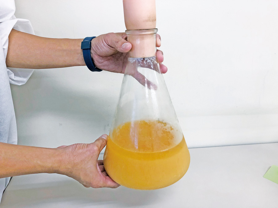 三角フラスコで乳酸菌を増やします。
